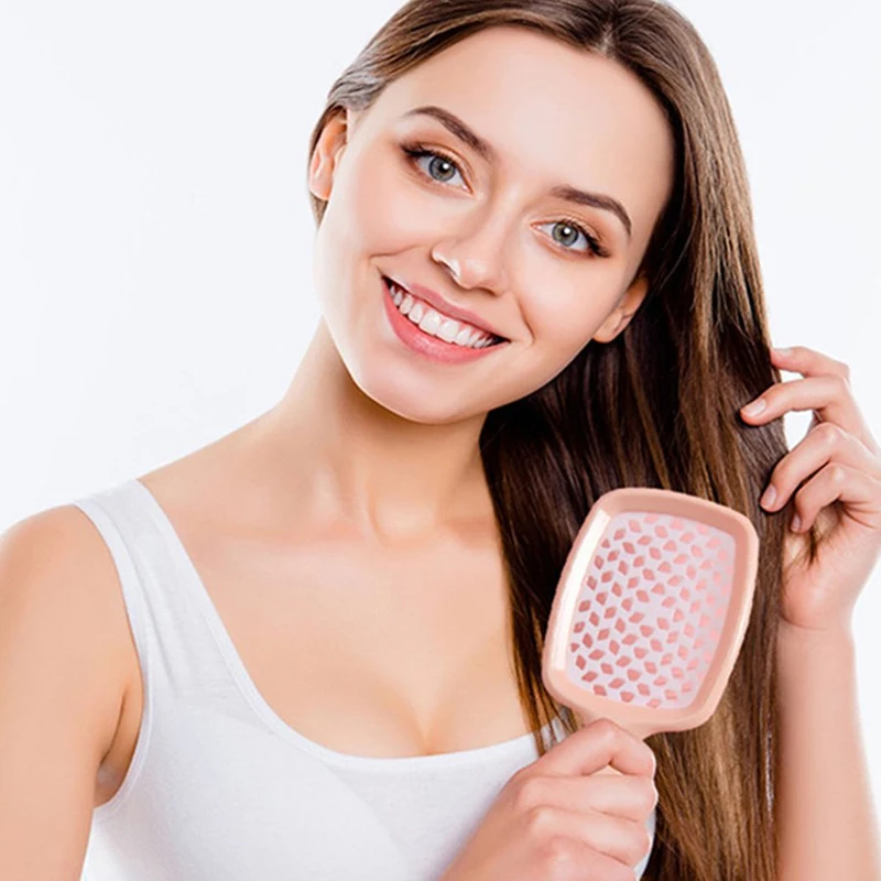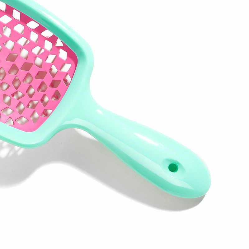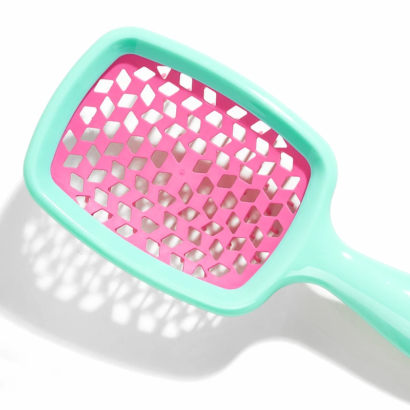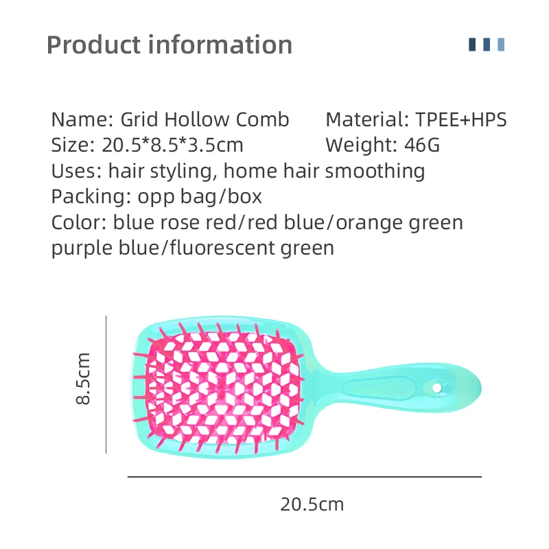 The Fluffy Mesh Hair Comb is a versatile styling tool designed for both wet and dry hair. Its ergonomic design ensures comfortable use, while the detangling mesh easily glides through knots without pulling. Ideal for salon professionals or DIY hairdressing at home, it also features a built-in scalp massage function to promote healthier hair and a relaxing styling experience.